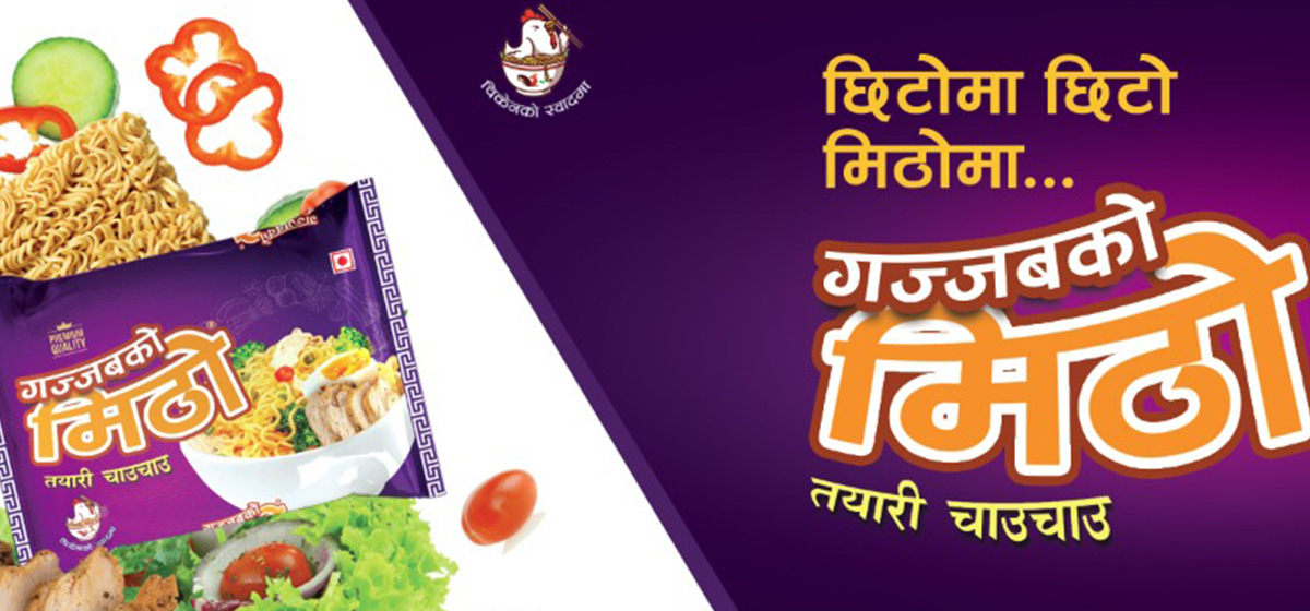 काठमाडौं, २२ असोज । सिद्धि विनायक स्न्याक्स एण्ड नुडल्स प्रालिले नयाँ ब्राण्ड ‘गज्जबको मिठो चाउचाउ’ बजारमा ल्याएको छ। कम्पनीद्वारा उत्पादित गज्जबको पिरो चाउचाउको सफलतापछि कम्पनीले अर्को ब्राण्ड गज्जबको मिठो लिएर आएको हो।