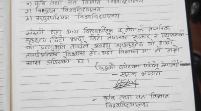 काठमाडौं २३ असोज । हमासको आक्रमणपछि इजरायलमा बंकरभित्र बसिरहेका एक नेपाली विद्यार्थीले उद्धारको अपिल गर्दै प्रधानमन्त्री पुष्पकमल दाहाल प्रचण्डलाई पत्र लेखेका छन्।