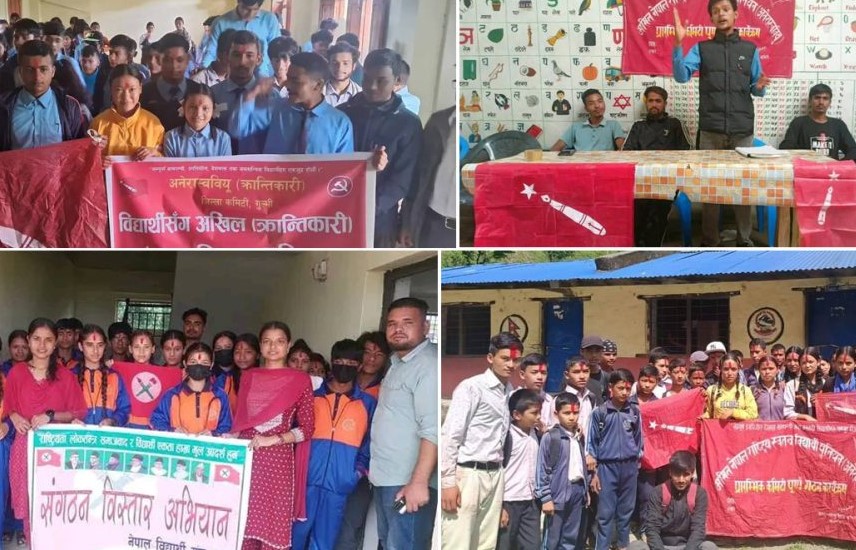 अखिल कान्तिकारीका जिल्ला अध्यक्ष राजन केसी, पार्टीले चलाइरहेको ‘जनतासँग माओवादी’ अभियानअन्तर्गत विद्यालयहरुमा कमिटी बनाइरहेको बताउँछन् । ‘विद्यार्थी राजनीतिक हिसाबमा सचेत हुनुपर्छ, देशमा भइरहेका घटनाहरुबारे आवाज उठाउन सक्ने बन्नुपर्छ भनेर संगठन बनाइरहेका छौ’, उनी भन्छन् ।
