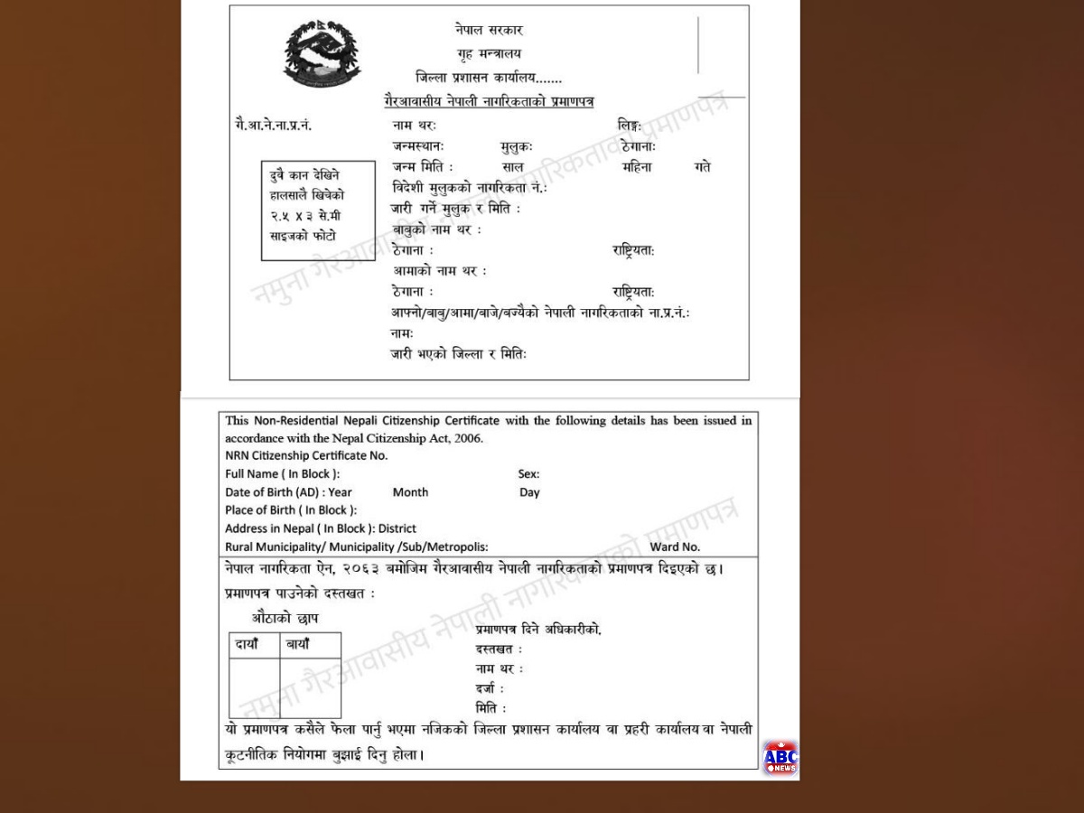 काठमाडौं, ३० असोज । सरकारले गैरआवासीय नेपाली (एनआरएन) लाई आजदेखि नागरिकता वितरण सुरु गर्दै छ । गैरआवासीय नेपालीहरु विश्व सम्मेलनका लागि काठमाडौंमा भेला भएको मौकामा प्रधानमन्त्री पुष्पकमल दाहाल प्रचण्डले बालुवाटारस्थित निवासबाट एनआरएन नागरिकता वितरण शुभारम्भ गर्न लागेका हुन् ।सुरुमा एनआरएनका पदाधिकारीहरुबाट नागरिकता वितरण शुभारम्भ गर्न लागिएको प्रधानमन्त्री प्रचण्डका प्रेस संयोजक सूर्यकिरण शर्माले जानकारी दिए । अन्यले पछि क्रमशः नागरिकता पाउनेछन् ।गत जेठमा संशोधन भएको नागरिकतासम्बन्धी ऐनअनुसार नागरिकता नियमावली सरकारले यसअघि नै स्वीकृत गरेकाले गैरआवासीय नेपालीलाई नेपालीले नेपालको नागरिकता पाउने बाटो खुलेको थियो ।