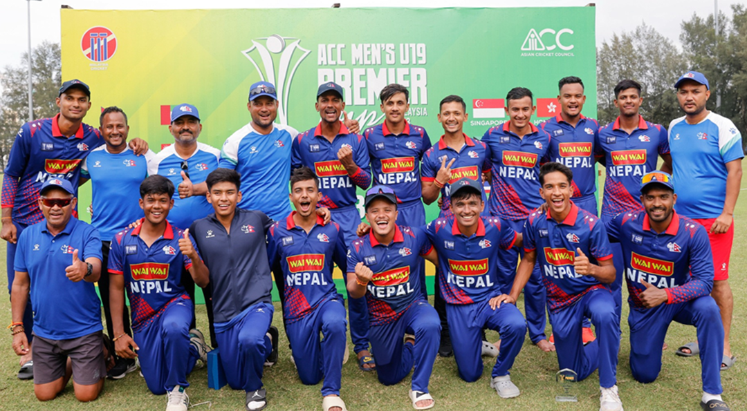 कात्तिक ७, काठमाडौँ | देव खनालको कीर्तिमानी ब्याटिङ र आकाश त्रिपाठीको घातक बलिङमा यूएईलाई हराउँदै नेपालले एसीसी यू-१९ प्रिमियर कपको उपाधि जितेको छ।