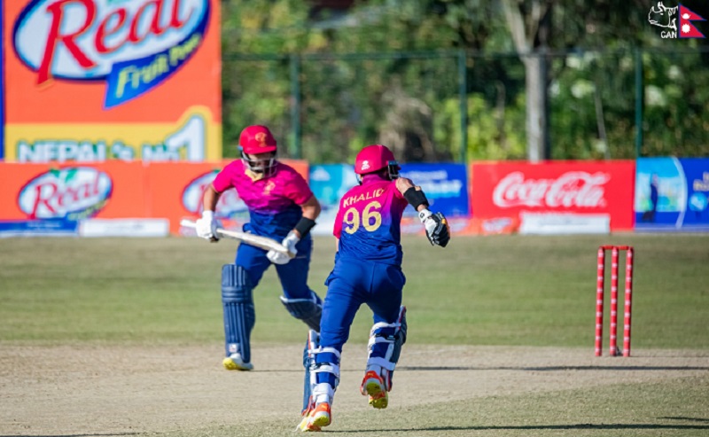 दोस्रो बल डट राखेपछि चार बलमा पाँच रन चाहिएको थियो । तेस्रो बलमा एक रन दिँदा लगत्तै वाइड फाले । चौथो बलमा आयनले एक रन बटुले । दुई बलमा दुई रन चाहिएको थियो । पाँचौँ बलमा बासिलले छक्का हान्दै रोमाञ्चक जित दिलाए ।नेपालका अभिनाश बोहरा र गुल्सन झाले समान २ विकेट लिए ।