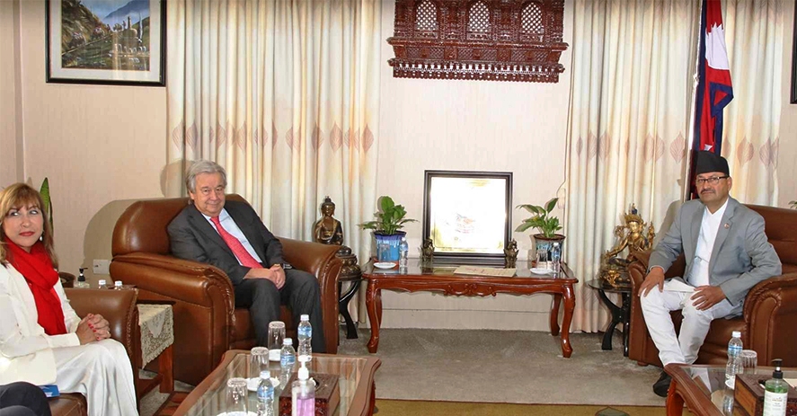 उनीहरुबीच परराष्ट्र मन्त्रालयमा भेटवार्ता भएको हो । महासचिव गुटरेस आइतबार राति नेपाल भ्रमणमा आएका थिए ।