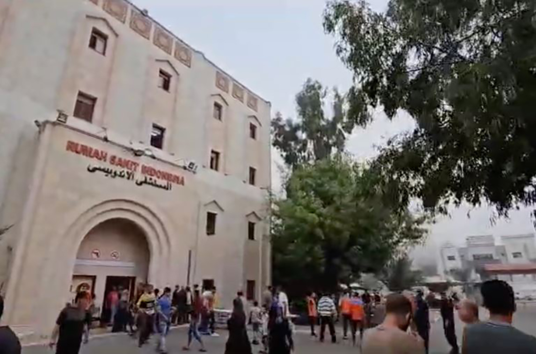 गाजाको तल अल–हवा क्षेत्रमा रहेको सो अस्पताल प्रशासनले ५० मिटर पर बिहानैदेखि बम खसिरहेको जनाएको छ । अस्पताल र अस्पताल परिसरमा करिब १४ हजार मानिसले आश्रय लिएका बताइएको बीबीसीले जनाएको छ ।