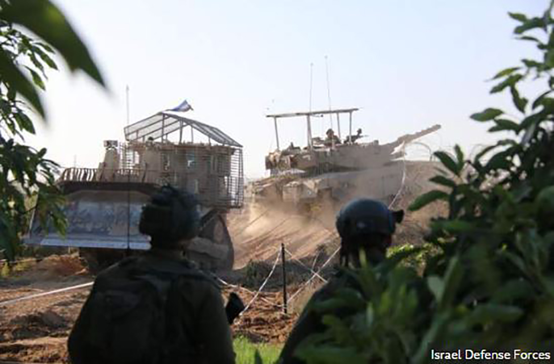 त्यसयता इजरायलले हमास शासित गाजामा ठूलो हवाई बमबारी अभियान चलायो । सेनाले उत्तरी गाजा क्षेत्रमा इजरायली सैनिकको तस्बिर जारी गरेको छ । सोमबार प्रत्यक्षदर्शीले गाजाको बाहिरी भागमा ट्यांकहरू रहेको बताएका छन् ।इजरायलले २४ घण्टामा ६०० लक्ष्यमा निसाना बनाएको जनाएको छ । यो अहिलेसम्मको सबैभन्दा ठूलो बमबारीमध्येको एक हो । सेनाले हमासबाट हराइरहेकी एक महिलालाई बचाएको जनाएको छ ।
