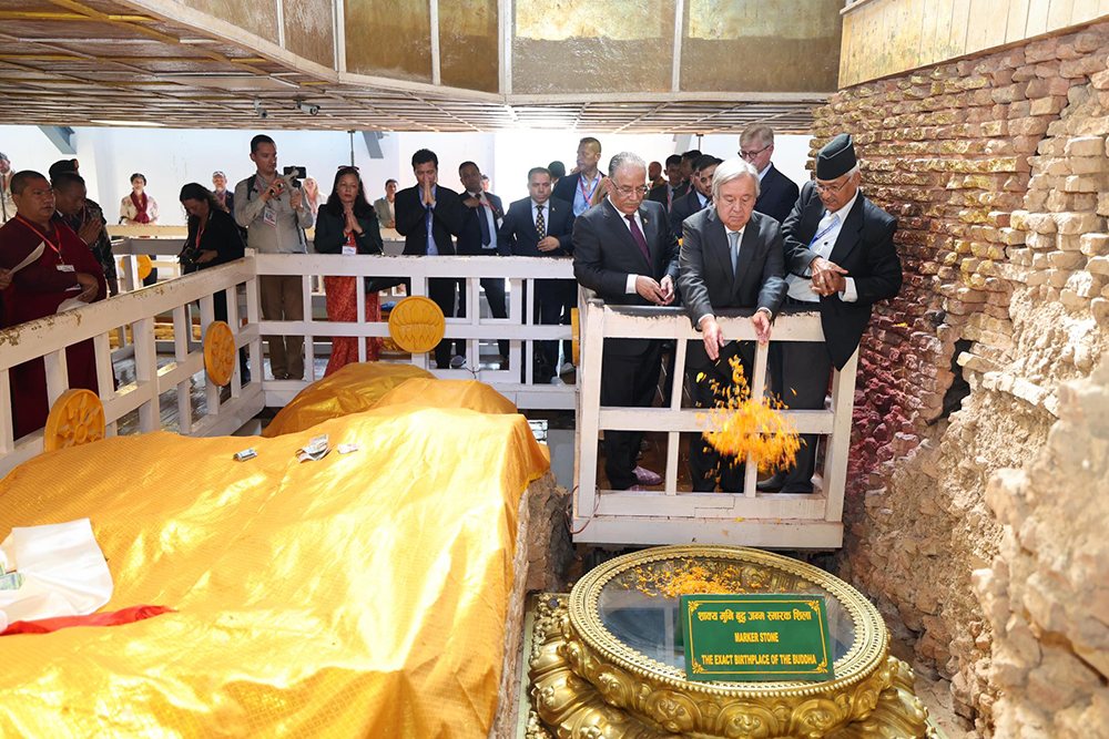 बुद्ध जन्मस्थल लुम्बिनीमा पहिलो पटक भ्रमणमा आएका महासचिव गुटेरेसलाई प्रधानमन्त्री पुष्पकमल दाहाल ‘प्रचण्ड’ सँगै संस्कृति पर्यटन तथा नागरिक उड्डयन मन्त्री सुदन किराती, लुम्बिनीका मुख्यमन्त्री डिल्लीबहादुर चौधरी, संस्कृति, पर्यटन तथा नागरिक उड्यन राज्यमन्त्री सुशीला श्रीपाली, लुम्बिनी विकास कोषका उपाध्यक्ष डा। ल्यारक्याला लामा लगायतले स्वागत गरे । उनी आजै काडमाडौं फर्केका छन् ।