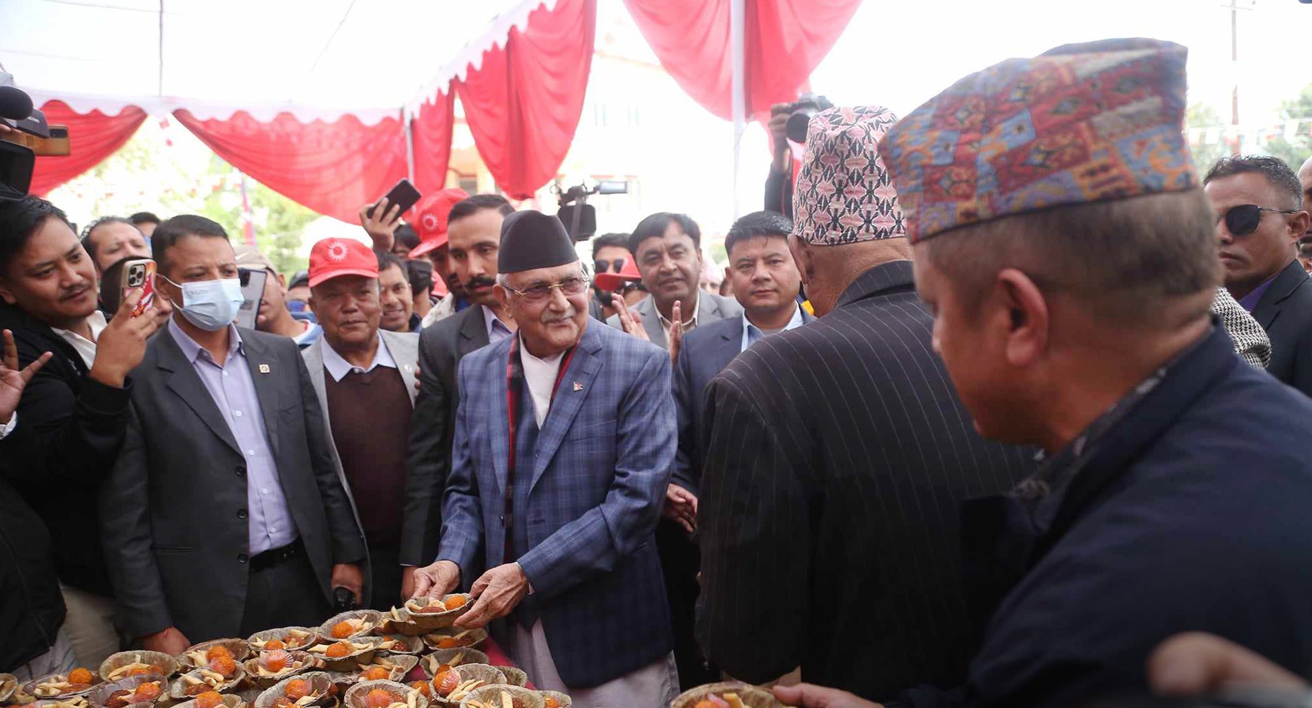 आज बुधबार एमालेको चियापान कार्यक्रममा एमाले अध्यक्ष केपी शर्मा ओलीले पार्टी कार्यालय च्यासलमा पुगेर चियापानमा राखिएको मिठाई वितरण गर्दै कार्यक्रमको सुरु गरेका छन्।
