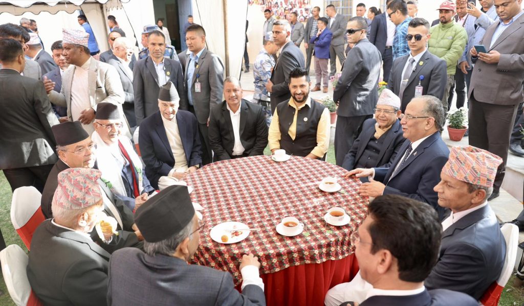 काठमाडौं, १५ कात्तिक । नेकपा एमालेले दशैं, तिहार, छठलगायतका चाडपर्वको अवसरमा बुधबार चियापान कार्यक्रम आयोजना गरेको छ । पार्टी कार्यालय च्यासलमा आयोजित कार्यक्रममा प्रमुख दलका नेताहरू समेत सहभागी भएका छन् ।