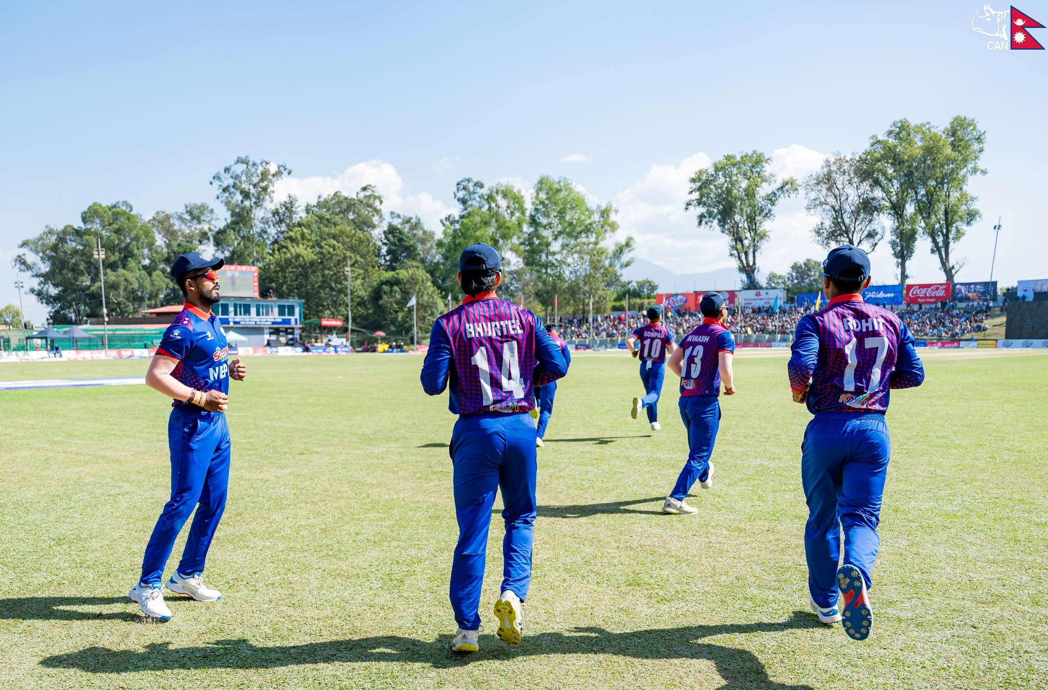 नेपालका करण केसीले तीन विकेट लिए । सन्दीप लामिछाने र सोमपाल कामीले समान दुई विकेट लिए । अभिनाश बोहरा र गुल्सन झाले एकरएक विकेट झारे ।