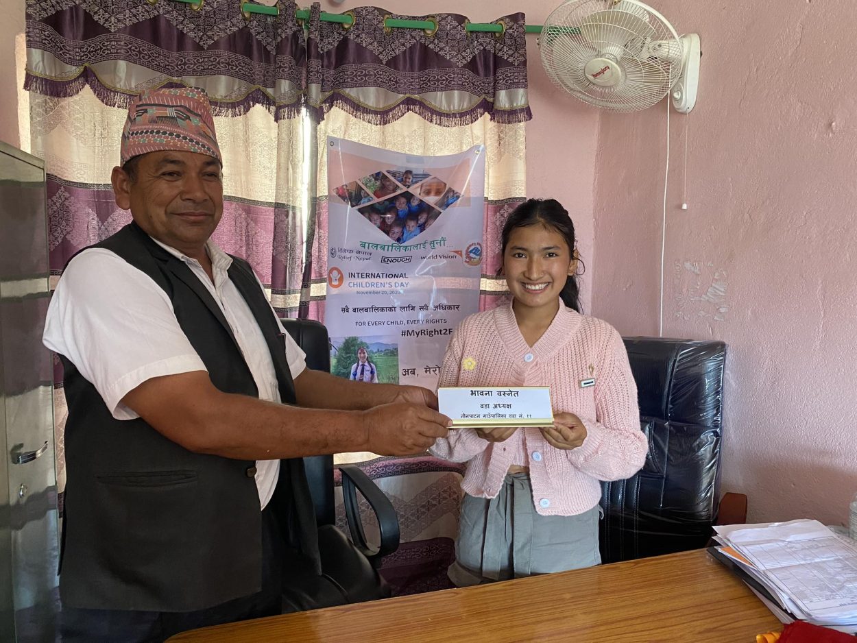अन्तर्राष्ट्रिय बाल दिवस (नोभेम्वर २०) को अवसर पारेर एक दिनका लागि उनी वडाध्यक्ष बनेकी हुन् ।