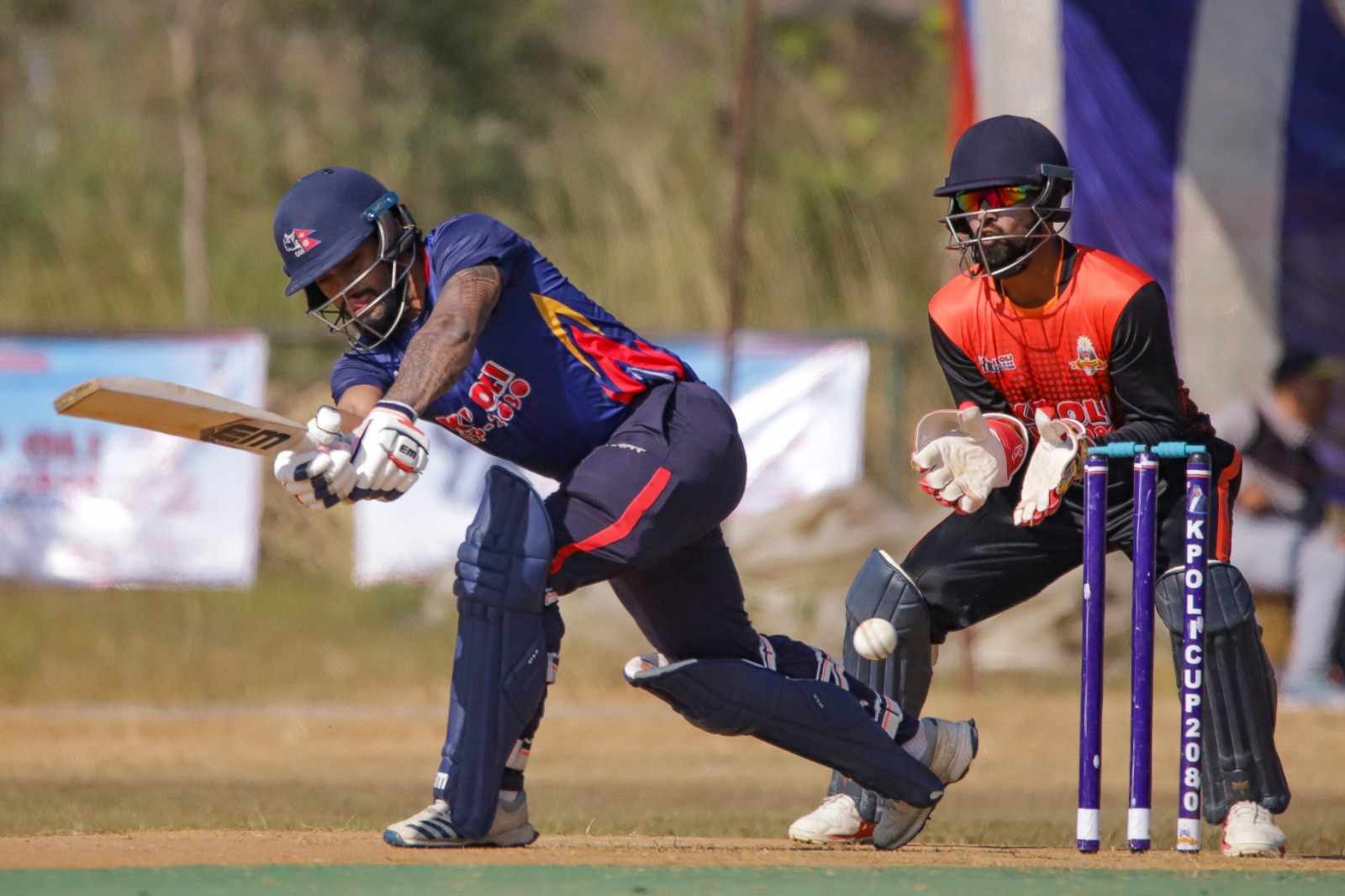 नरेन्द्रले ३० बलमा पाँच चौका र एक छक्कासहित ३९ रन थपे । अन्तिममा किरणसँगै अविजित रहेको नारायण जोशीले १७ रन बनाए । कप्तान राजु रिजालले १९ र वसन्त कार्कीले १५ रन जोडे ।