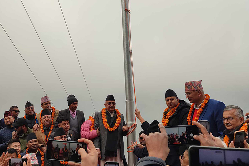 काठमाडौं, १४ मंसिर । नेकपा एमालेले मध्यपहाडी यात्रा सुरु गरेको छ। पार्टी अध्यक्ष केपी शर्मा ओलीले झुलाघाटमा राष्ट्रिय झन्डोत्तोलन गरेर अभियानको सुरुवात गरे।