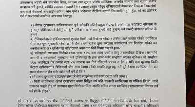 ‘यस विषयमा समितिलाई जानकारी उपलब्ध गराउन मन्त्री रेखा शर्मा, विगतमा टेलियासोनरा आजियटा प्रकरणमा मुद्दामा नेपालको पक्षमा बहस गरेका अधिवक्ता सुरेन्द्र भण्डारी, बालकृष्ण न्यौपानेसहित लगानी बोर्ड, दोहोरो करबारे बुझ्न आन्तरिक राजश्व विभागका प्रतिनिधी बोलाएर छलफल गर्नु पर्ने आवश्यक छ’, श्रेष्ठको पत्रमा उल्लेख छ।