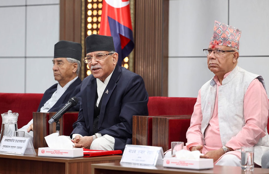 “प्रधानमन्त्रीसँग देउवा, नेपाल र एकीकृत समाजवादीका नेताहरू भेटघाटमा हुनुहुन्छ,” बालुवाटार स्रोतले भन्यो, “गठबन्धनको बैठक वा कुनै राजनीतिक छलफलका लागि होइन । सामान्य भेटघाट हो ।”