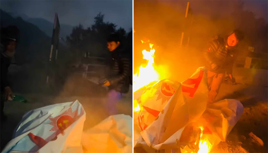काठमाडौं, २६ मंसिर । नेकपा एमालेले जारी राखेको संकल्प यात्राका क्रममा पाहुनालाइ स्वागतका लागि तयार पारिएको स्वागतद्वार पहिचानवादीले भत्काएर जलाइदिएका छन् । एमाले यतिबेला झुलाघाट– चिवा भञ्ज्याङ्ग संकल्प यात्रामा रहेको छ ।