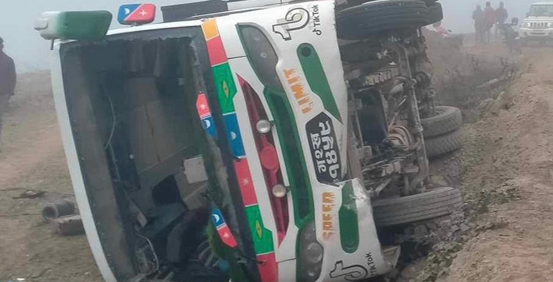 आइतबार बिहान ग २ ख १४५९ नम्बरको बसले टिप्परलाई ‘ओभरटेक’ गर्ने क्रममा सडकबाट तल खस्दा दुर्घटना भएको प्रहरी नायब उपरीक्षक मोहनबहादुर खाणले जानकारी दिए।