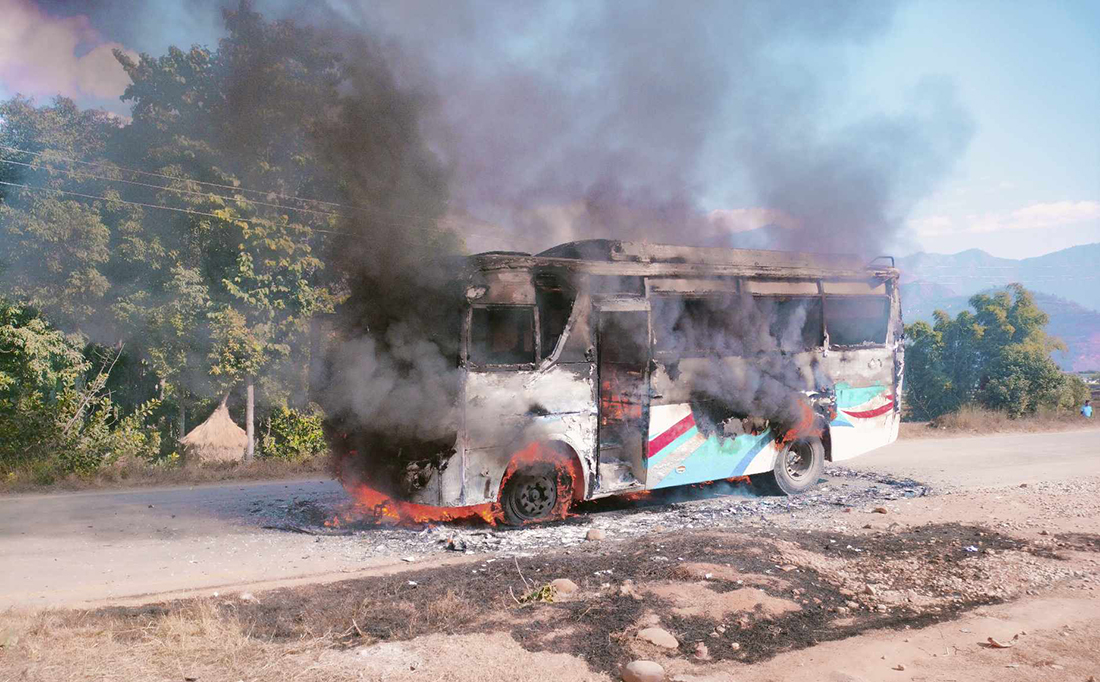 मोटरसाइकललाई ठक्कर दिने अरनिको यातायात सेवा समितिको बसमा स्थानीयले आगजनी गर्नुका साथै राजमार्ग अवरुद्ध गरेका थिए ।