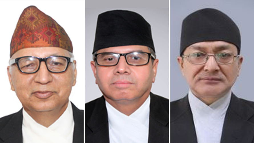 सर्वोच्च अदालतका न्यायाधीशत्रय डा आनन्दमोहन भट्टराई, तिलप्रसाद श्रेष्ठ र प्रकाशकुमार ढुंगाना