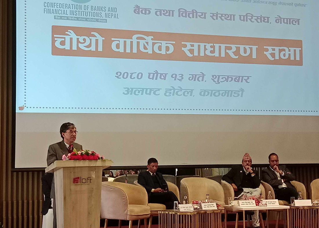 शुक्रबार बैंक तथा वित्तीय संस्था परिसंघ नेपाल ९सिबिफिन०को चौथो वार्षिक साधारणसभामा उनले बैंकिङकै कारण अरू क्षेत्र मैलाएको भए पनि अपेक्षाअनुसारको रोजगारी र उत्पादन वृद्धि नभएको उल्लेख गरे ।