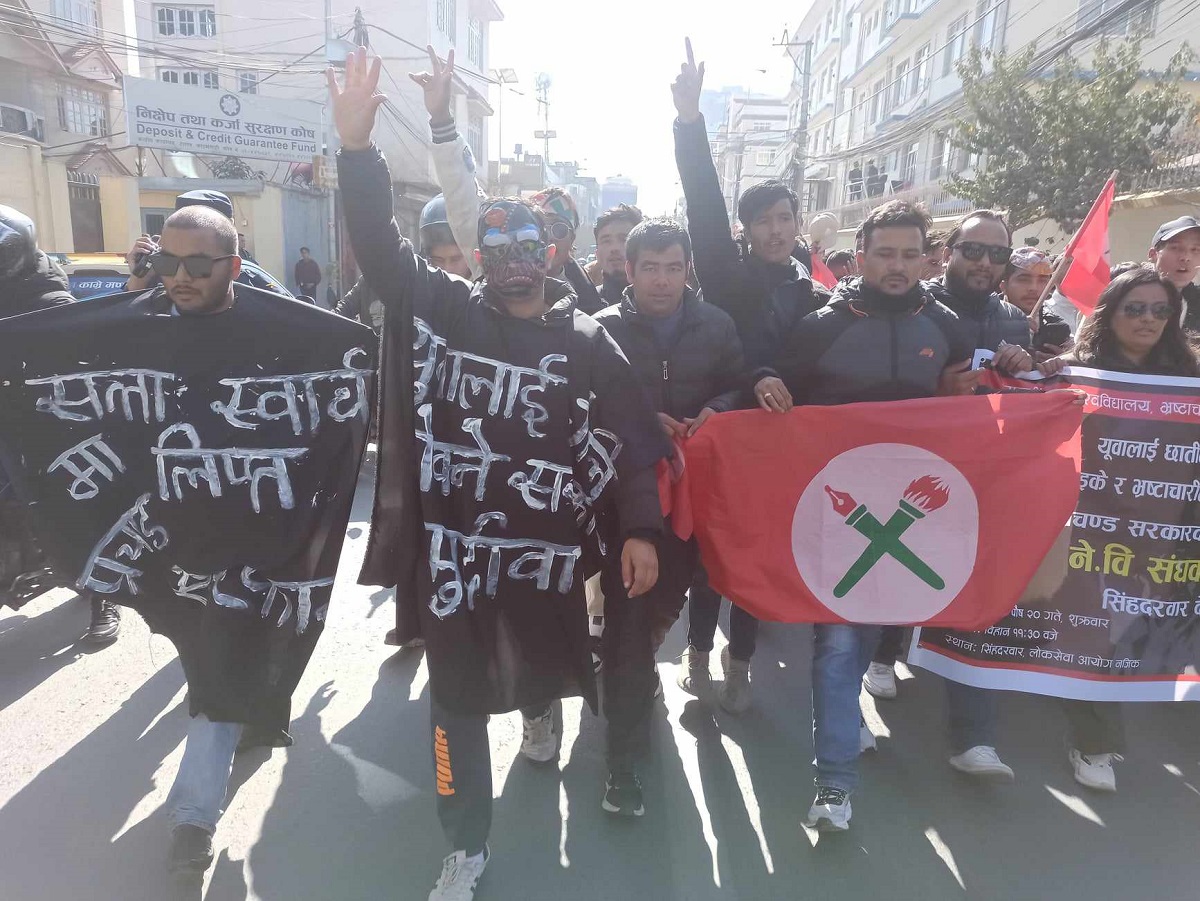 काठमाडौं २० पौष । सत्तारूढ नेपाली कांग्रेसको भ्रातृ संस्था नेपाल विद्यार्थी संघ नेविसंघ ले सरकारविरूद्ध मार्चपास गरेको छ। पुष्पकमल दाहाल प्रचण्ड नेतृत्वको सरकारको राज्य आतंकविरूद्धु भन्दै नेविसंघले शुक्रबार मार्चपास गरेको हो।