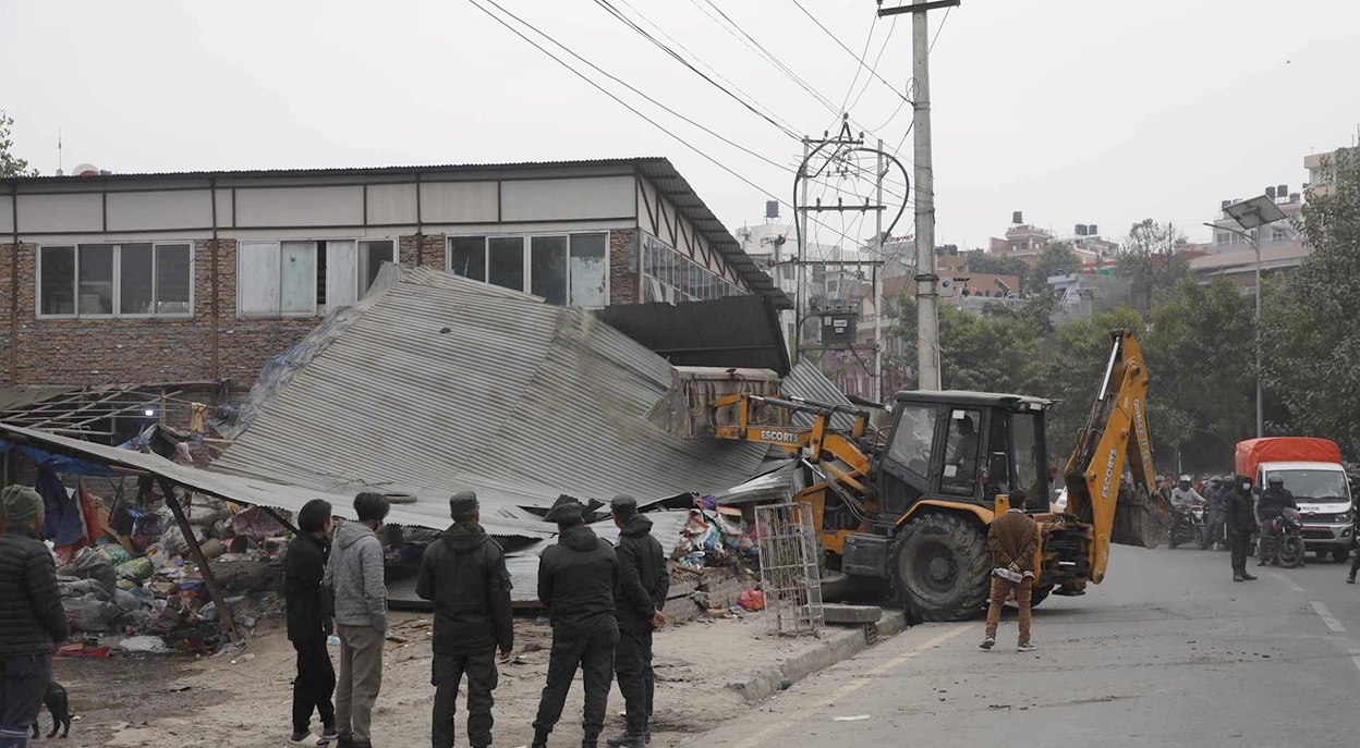 काठमाडौं २१ माघ । सार्वजनिक जग्गा मिचेर बनाइएका भौतिक संरचनामा काठमाडौं महानगरपालिकाले डोजर चलाएको छ ।