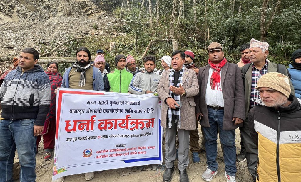 काठमाडौं, २१ माघ । ट्रयाक खुलेको २५ वर्षसम्म सडकको अवस्था नसुध्रिएपछि बागलुङ काठेखोला गाउँपालिकाका जनप्रतिनिधि नै आन्दोलमा उत्रिएका छन् ।