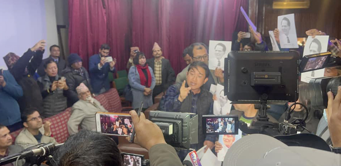 काठमाडौ २८ माघ । इतिहास लत्याइएको भन्दै नेपाल पत्रकार महासंघको कार्यक्रमस्थलमै पत्रकाहरू खनिएका छन्। नेपाल आदिवासी पत्रकार संघ फोनिज० को नेतृत्वमा नेपाल पर्यटन बोर्डको सभा हलमा पुगेका दर्जनौँ पत्रकारहरू महासंघविरुद्ध खनिएका हुन्।