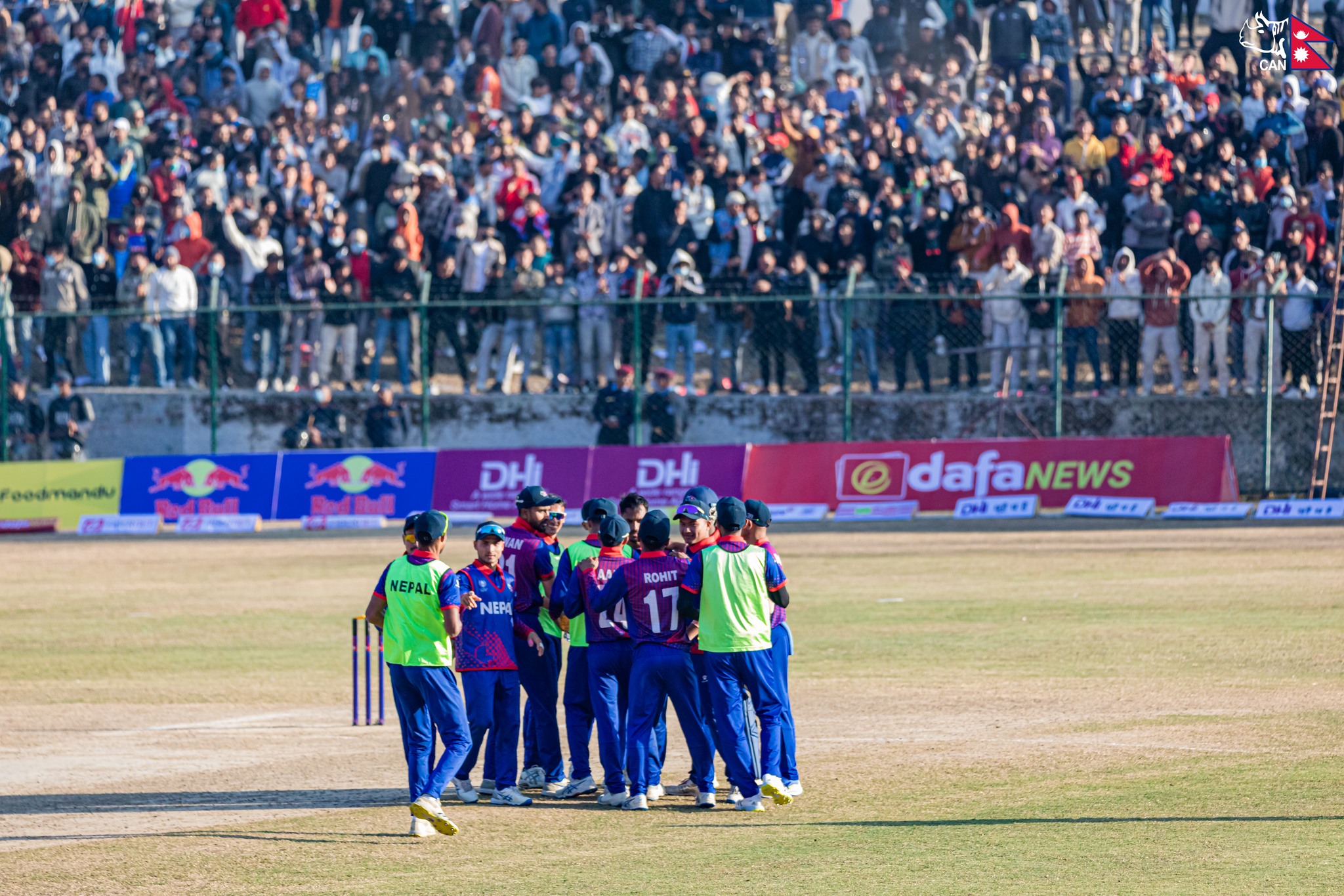 कीर्तिपुरस्थित त्रिवि मैदानमा नेपालले चौथो विकेट लिएको छ। नेपालका लागि चौथो विकेट ललित राजवंशीले लिएका छन्। उनले क्यानडाका नवनीद धलिवाललाई ५० रनमा आकास चन्दबाट क्याच गराए। आउट हुनुअघि उनले ८२ बलमा ४ चौका हिर्काए।