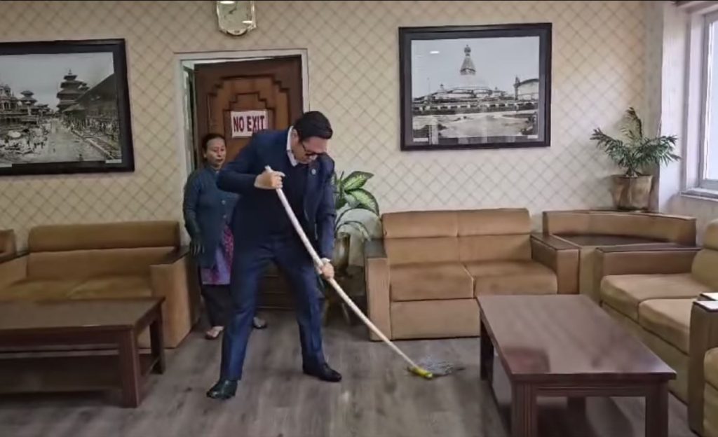 काठमाडौं ४ फागुन । सँस्कृति, पर्यटन तथा नागरिक उड्डयन मन्त्री सुदन किराँतीले आज आफ्नो कार्यकक्ष आफैं सफा गरेका छन् ।