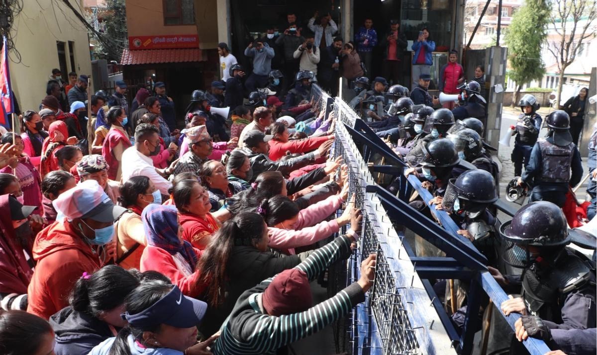 प्रदर्शनकारीहरूले राष्ट्रबैंक अगाडिको निषेधित क्षेत्र तोडेर अगाडि बढ्न खोजेपछि प्रहरीले रोकेको थियो। त्यसपछि प्रहरी र प्रदर्शनकारीहरू बीच धकेलाधकेल भएको हो।