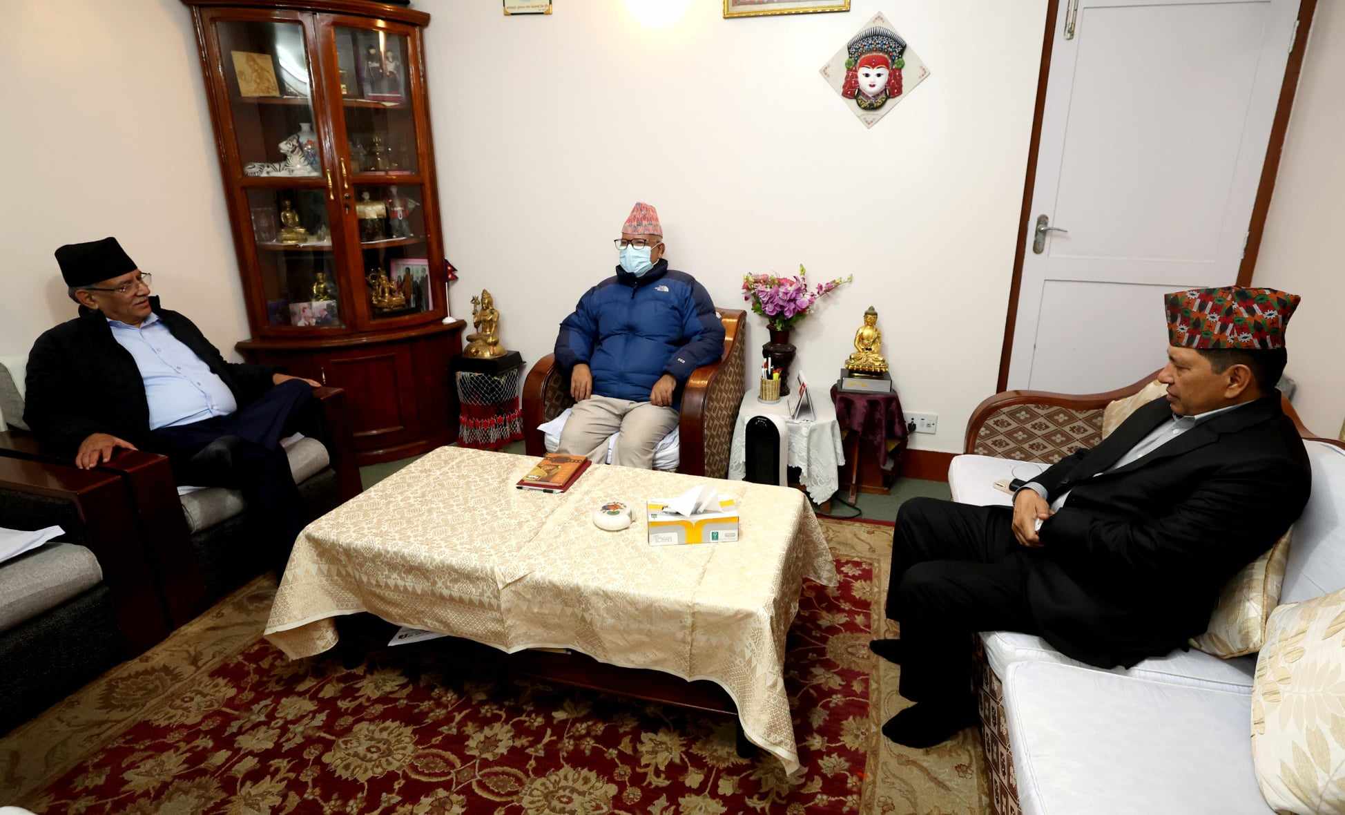 दुई नेताबीच केहीबेर अघिदेखि छलफल जारी रहेको एकीकृत समाजवादीका नेता जगन्नाथ खतिवडाले बताए। बालुवाटारमा नयाँगठबन्धनको बैठक चलिरहँदा प्रधानमन्त्री प्रचण्ड नारायणकाजी श्रेष्ठलाई लिएर माधव नेपाललाई भेट्न गएका हुन्।