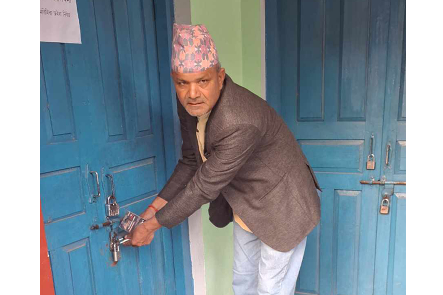अध्यक्ष मण्डलले सोमबार पदाधिकारीमा सर्वसम्मत घोषणा गर्ने तयारी गरेपछि सचिवमा उम्मेदवारी दिएका कर्णबहादुर चन्दले जिल्ला पार्टी कार्यालयमा तालाबन्दी गरेका छन् ।