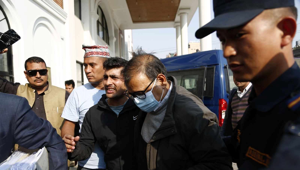 अदालतको ३२ नं। इजलासमा उनलाई प्रस्तुत गरिँदै छ। न्यायाधीश दुर्गाप्रसाद खनालको इजलासमा हिरासतमा राख्ने अनुमतिका लागि सरकारी वकिलले प्रस्तुत गर्न लागेका हुन्।
