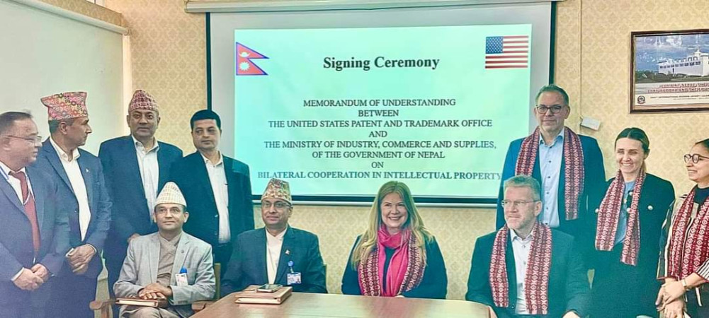 उद्योग, वाणिज्य तथा आपूर्तिमन्त्री दामोदर भण्डारी र नेपाल भ्रमणमा रहेकी अमेरिकी वाणिज्य मन्त्रालयअन्तर्गत बौद्धिक सम्पत्ति हेर्ने उपमन्त्री तथा पेटेन्ट तथा टेड्रमार्क कार्यालयकी निर्देशक क्याथी भिडालबीच समझदारीपत्रमा हस्ताक्षर भएको मन्त्रालय र अमेरिकी दूतावासले जनाएका छन् ।