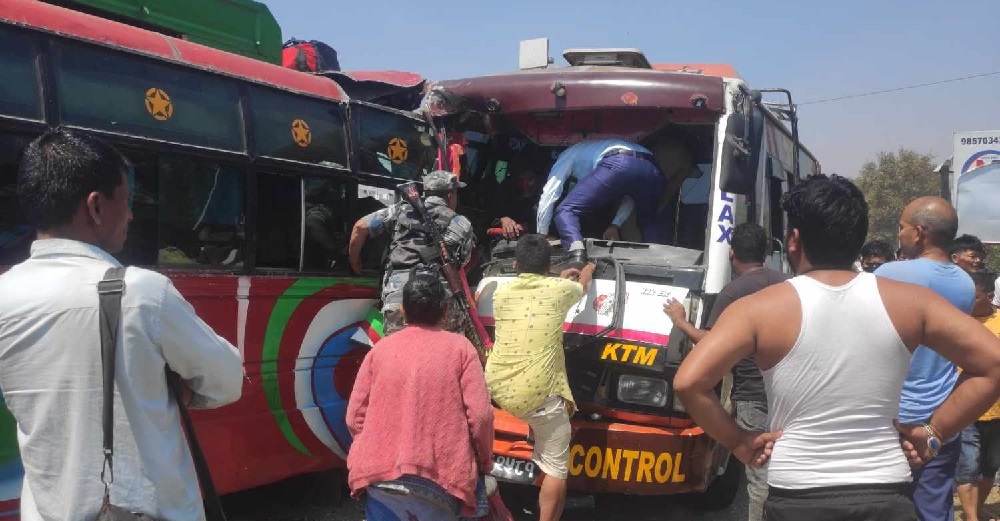 प्रहरी निरीक्षक श्रेष्ठका अनुसार बुटवलबाट सुर्खेततर्फ जाँदै गरेको लु १ ख ७३६३ नम्बरको बस र तुलसीपुरबाट बुटवलतर्फ जाँदै गरेको रा १ ख २५८१ नम्बरको बस एक आपसमा ठोक्किएर दुर्घटना भएको थियो । दुर्घटना दुवै बसमा सवार यात्रु घाइते भएको प्रहरी निरीक्षक श्रेष्ठले जानकारी दिनुभयो ।