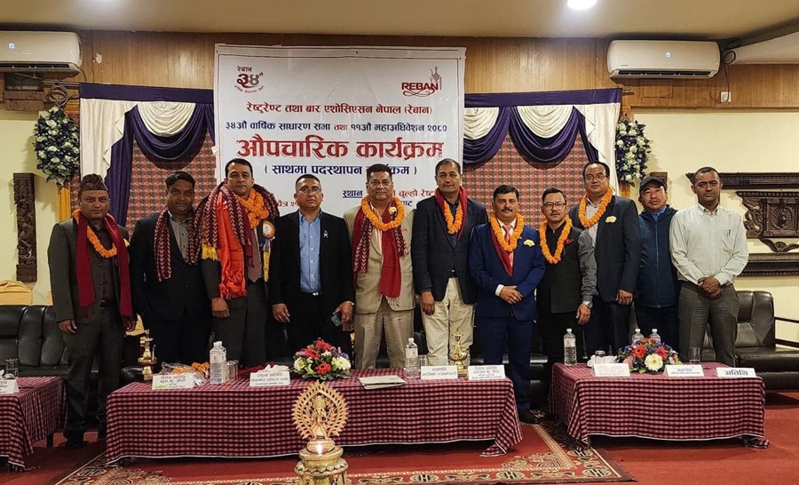 काठमाडौं, २२ चैत्र । रेष्टुरेण्ट एण्ड बार एशोसिएशन (रेबान) मा नया कार्यसमितिमा चयन भएको छ । बुधवार साँझ काठमाडौंमा रेष्टुरेण्ट एण्ड बार एशोसिएशनको ३४ औं वार्षिक साधारण सभा तथा ११औं महाधिवेशनबाट अध्यक्षमा संघर्ष बिष्ट, प्रथम उपाध्यक्षमा नरेशध्वज श्रेष्ठ, क्षेत्रगत उपाध्यक्षमा लक्ष्मण बराल पोखरा, क्षेत्रगत उपाध्यक्षमा नरेश गिरी, सौराह, महासचिवमा शरदकुमार दाहाल, कोषाध्यक्षमा विप्लव भट्ट, सचिवमा सचिन कर्माचार्य, सहकोषाध्यक्षमा उद्धव ढकाल निर्वाचित हुनुभएको छ । कार्यसमिति सदस्यमा अनुपलाल कक्षपती, नृपेश श्रेष्ठ, गुणराज श्रेष्ठ, तैजससुन्दरलाल कक्षपती, रितेश श्रेष्ठ, डोलबहादुर थापा सारु, निःवर्तमान अध्यक्ष अरनिको राजभण्डारी, पदेन सदस्यमा नरेश भट्टराई, ध्रुव गिरी, जितेन्द्रलाल भूमी, अच्युत भट्ट, मनोनित सदस्यमा एकराज अधिकारी र देवेन्द्र गिरी चयन हुनुभएको छ ।