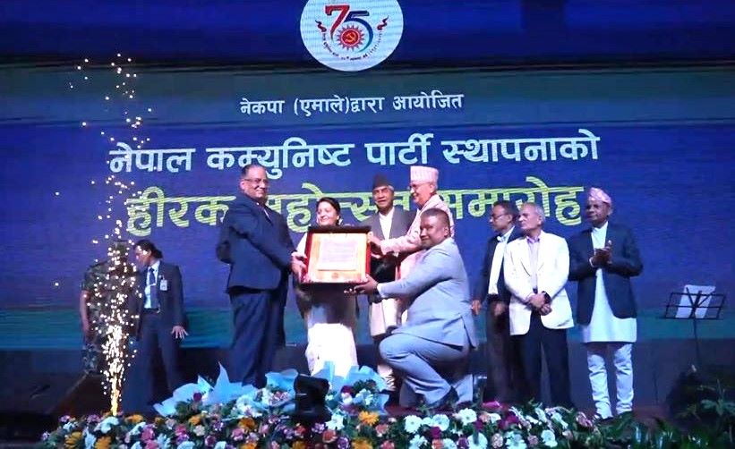 काठमाडौं १० बैशाख । नेकपा एमाले ले पूर्व राष्ट्रपति विद्यादेवी भण्डारीलाई ‘गणतन्त्र गौरव’ बाट सम्मानित गरेको छ । नेपाल कम्युनिष्ट पार्टी ९नेकपा० स्थापनाको हीरक महोत्सवको अवसर पारेर एमालेले उहाँलाई सो सम्मान प्रदान गरेको हो ।