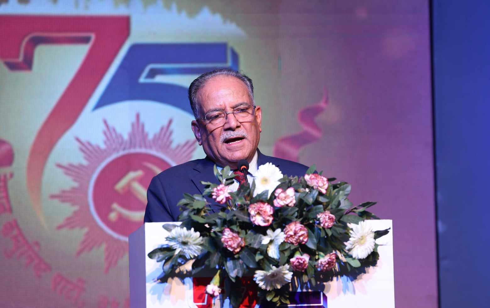 नेपालमा कम्युनिष्ट पार्टी स्थापनाको ७५ वर्ष पुगेको अवसरमा नेकपा९एमाले०ले आज आयोजना गरेको कार्यक्रमलाई सम्बोधन गर्दै प्रधानमन्त्री प्रचण्डले सबै राजनीतिक दलहरू एकताबद्ध भएर संविधानको मर्मअनुसार समाजवादको बाटोमा लाग्नुपर्नेमा जोड दिनुभयो ।