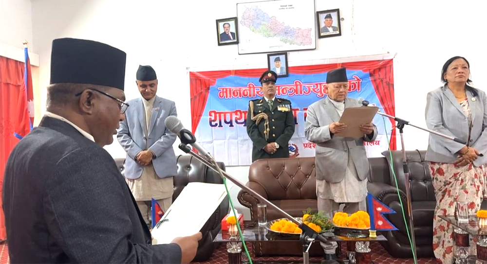 उहाँले बुधबार प्रदेश प्रमुख तिलक परियालसमक्ष शपथ लिनुभएको हो। मन्त्रीमा नियुक्त हुनुभएका परियार माओवादी संसदीय दलका प्रमुख सचेतक हुनुहुन्छ। गत चैत्र २७ गते नियुक्त हुनुभएका मुख्यमन्त्री यामलाल कँडेलले १५ दिनपछि मन्त्रिपरिषद विस्तार गर्नुभएको हो।