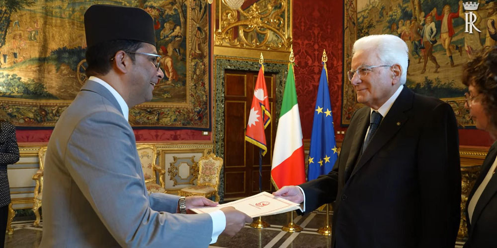 काठमाडौं १३ बैशाख । इटालीका लागि नेपालका गैरआवासीय राजदूत रामप्रसाद सुवेदीले मङ्गलबार त्यहाँका राष्ट्रपति सेर्गियो माटारेलासमक्ष आफ्नो ओहोदाको प्रमाणपत्र प्रस्तुत गर्नुभएको छ ।