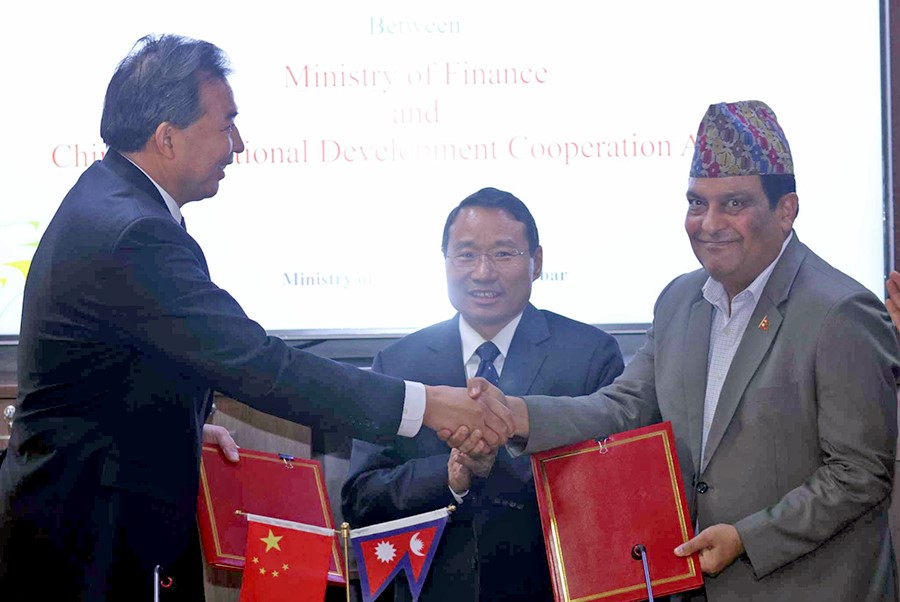 अर्थ मन्त्रालयमा बिहीबार आयोजित एक समारोहबीच अर्थ मन्त्रालयका सचिव मधुकुमार मरासिनी र स्वास्थ्य मन्त्रालयका सचिव डा। रोशन पोखरेल तथा चिनियाँ अन्तर्राष्ट्रिय विकास सहयोग संस्था ९चाइना इन्टरनेशनल डेभलेपमेन्ट को–अपरेशन एजेन्सी० का प्रमुख लियु झाओ हुईले हस्ताक्षर गरे ।