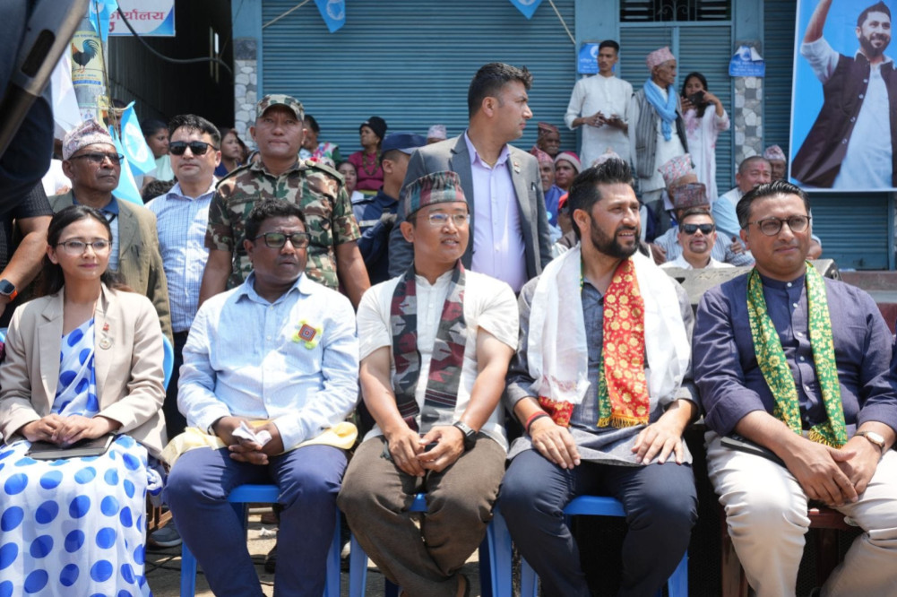 इलाममा चुनावी प्रचारप्रसारका क्रममा उम्मेदवार मिलन लिम्बुका साथमा रास्वपा सभापति रवि लामिछाने, उपसभापति स्वर्णीम वाग्ले, नेताहरू सन्तोष परियार र तोषिमा कार्की ।