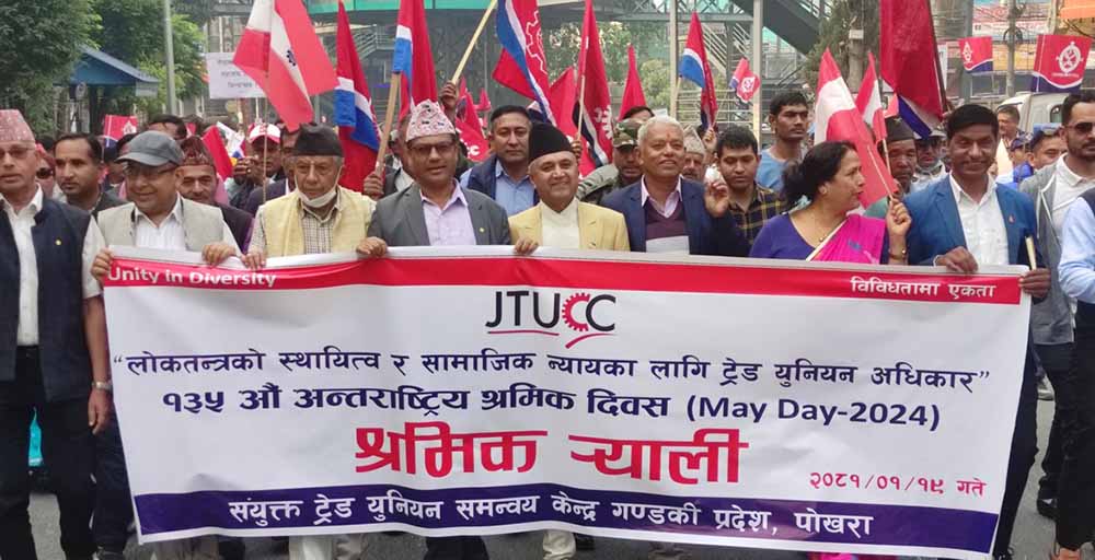 सभाअघि भएको र्यालीमा मुख्यमन्त्री अधिकारी, नेपाली कांग्रेस गण्डकी प्रदेश अध्यक्ष शुक्रराज शर्मा, नेकपा ९माओवादी केन्द्र० गण्डकी प्रदेश अध्यक्ष गायत्री गुरुङ, जिफन्ट उपाध्यक्ष जितेन्द्र श्रेष्ठ, नेपाल ट्रेड युनियन कांग्रेस उपाध्यक्ष राधिका कुइँकेल, अखिल नेपाल ट्रेड युनियन महासङ्घ उपाध्यक्ष सोमबहादुर थापा, नेपाल ट्रेड युनियन कांग्रेस गण्डकी अध्यक्ष मुरारी शर्मा, जिफन्ट गण्डकी अध्यक्ष रुद्र खत्री र संयुक्त ट्रेड युनियन समन्वय केन्द्र गण्डकी सदस्य रुद्र गौतम लगायत सहभागी हुनुहुन्थ्यो।