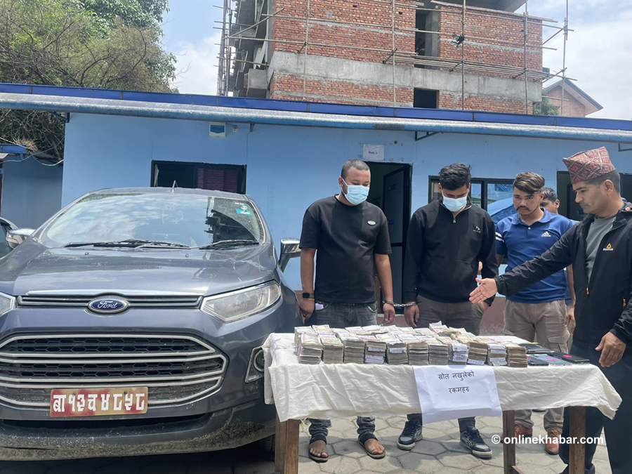 काठमाडौं उपत्यका अपराध अनुसन्धान कार्यालयका सूचना अधिकारी प्रहरी उपरीक्षक रवीन्द्र रेग्मीका अनुसार उनीहरुलाई बा १३ च ४८५८ नम्बरको गाडीमा स्रोत नखुलेको रकमसहित पक्राउ गरिएको थियो ।