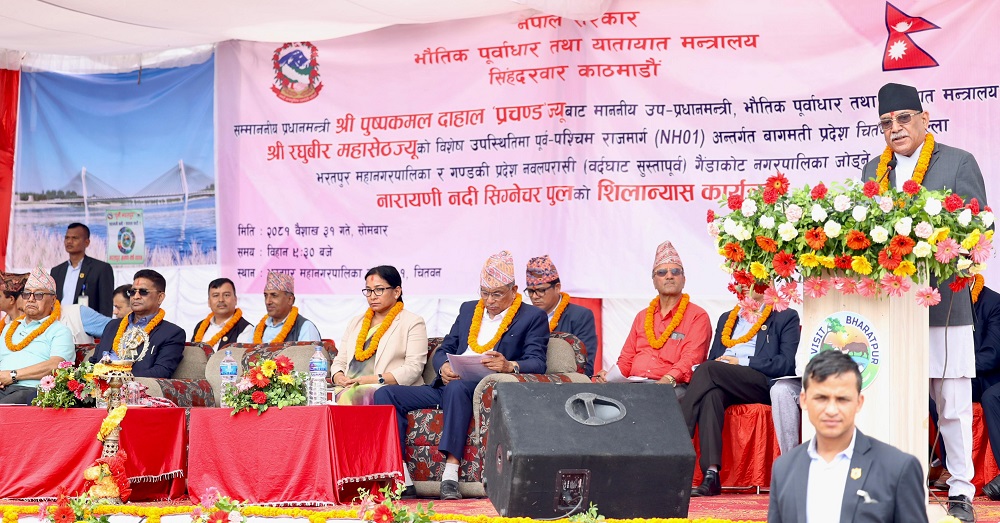 नारायणी नदीमाथि निर्माण हुने ‘सिग्नेचर ब्रिज’को सोमबार शिलान्यास गरेपछि प्रधानमन्त्री प्रचण्डले तुलनात्मक अध्ययन नै नगरी देशमा केही हुँदैन भन्ने नकारात्मक भाष्य सिर्जना गर्नु गलत भएको बताउनुभयो ।