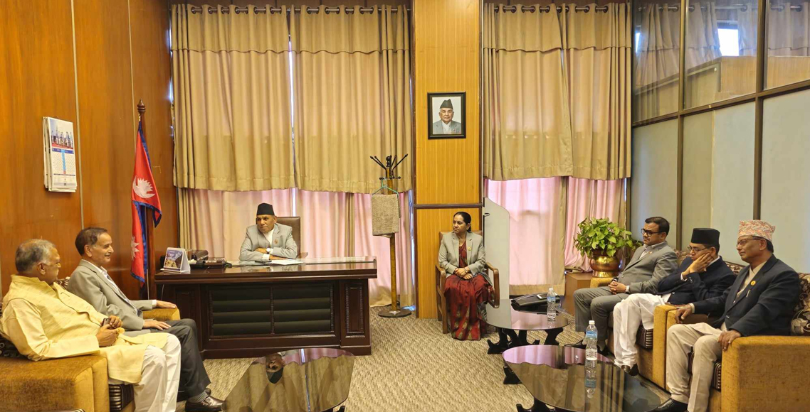 काठमाडौं १ जेठ । राष्ट्रिय सभा अध्यक्षज्यूको पहलमा राष्ट्रिय सभामा प्रतिनिधित्व गर्ने राजनीतिक दलका नेताहरूसँग संसद भवन बानेश्वरमा छलफल भएको छ।