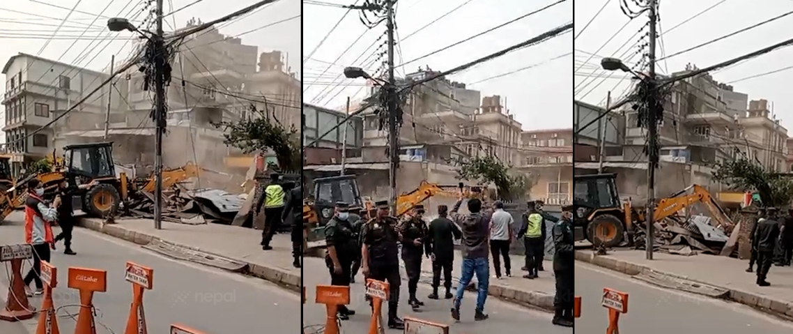 काठमाडौँ महानगर प्रहरी बलका अनुसार, अतिक्रमित संरचना हटाउन चार वटा डोजर प्रयोग गरिएको थियो।
