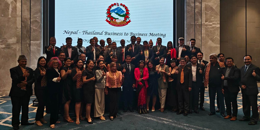 काठमाडौं १७ जेठ । थाइल्याण्डको राजधानी बैङ्ककस्थित नेपालको राजदूतावासले मुलुकको पर्यटन, व्यापार तथा लगानी प्रवर्द्धनका निम्ति थाइ उद्यमीहरूको उपस्थितिमा प्रवर्द्धनात्मक कार्यक्रम आयोजना गरेको छ ।