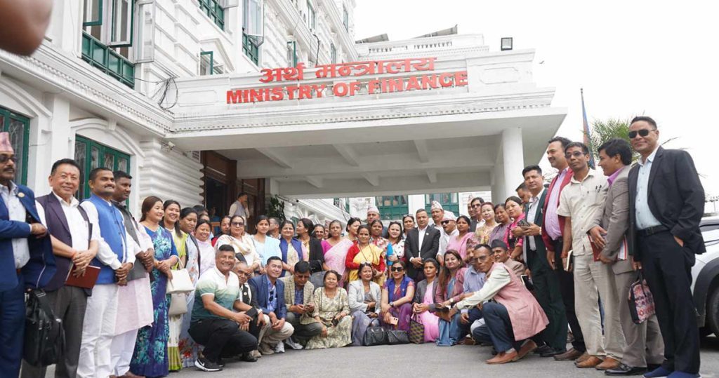 काठमाडौं २० जेठ । केन्द्र सरकारले वित्तीय समानीकरण अनुदान कटौती गरेको भन्दै देशभरिका स्थानीय तहका प्रतिनिधिले सिंहदरबारस्थित अर्थ मन्त्रालयमा विरोध प्रदर्शन गरेका छन् ।