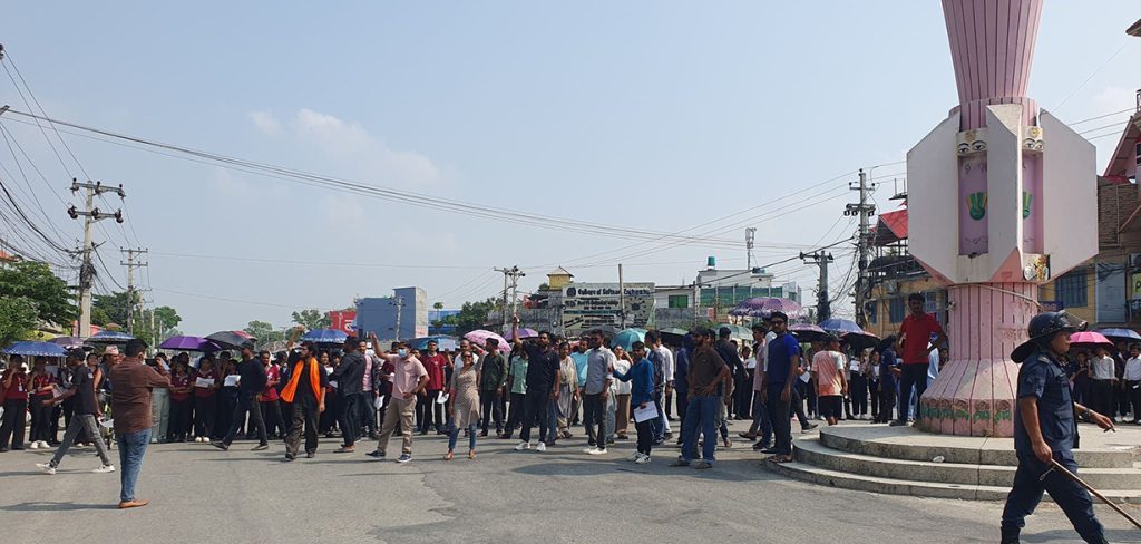 काठमाडौं २५ जेठ । मोरङको रंगेली नगरपालिकामा नगरप्रहरीमाथि आक्रमण र कार्यवाहक मेयर, प्रमुख प्रशासकीय अधिकृतमाथि दुर्व्यवहार गरेको आरोपमा पक्राउ परेकाहरुलाई छाड्न माग गर्दै विद्यार्थीहरूले विराटनगरमा प्रदर्शन गरेका छन् ।